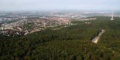 Der Fernsehturm, die Waldau mit Gazi-Stadion, Staatsgalerie,